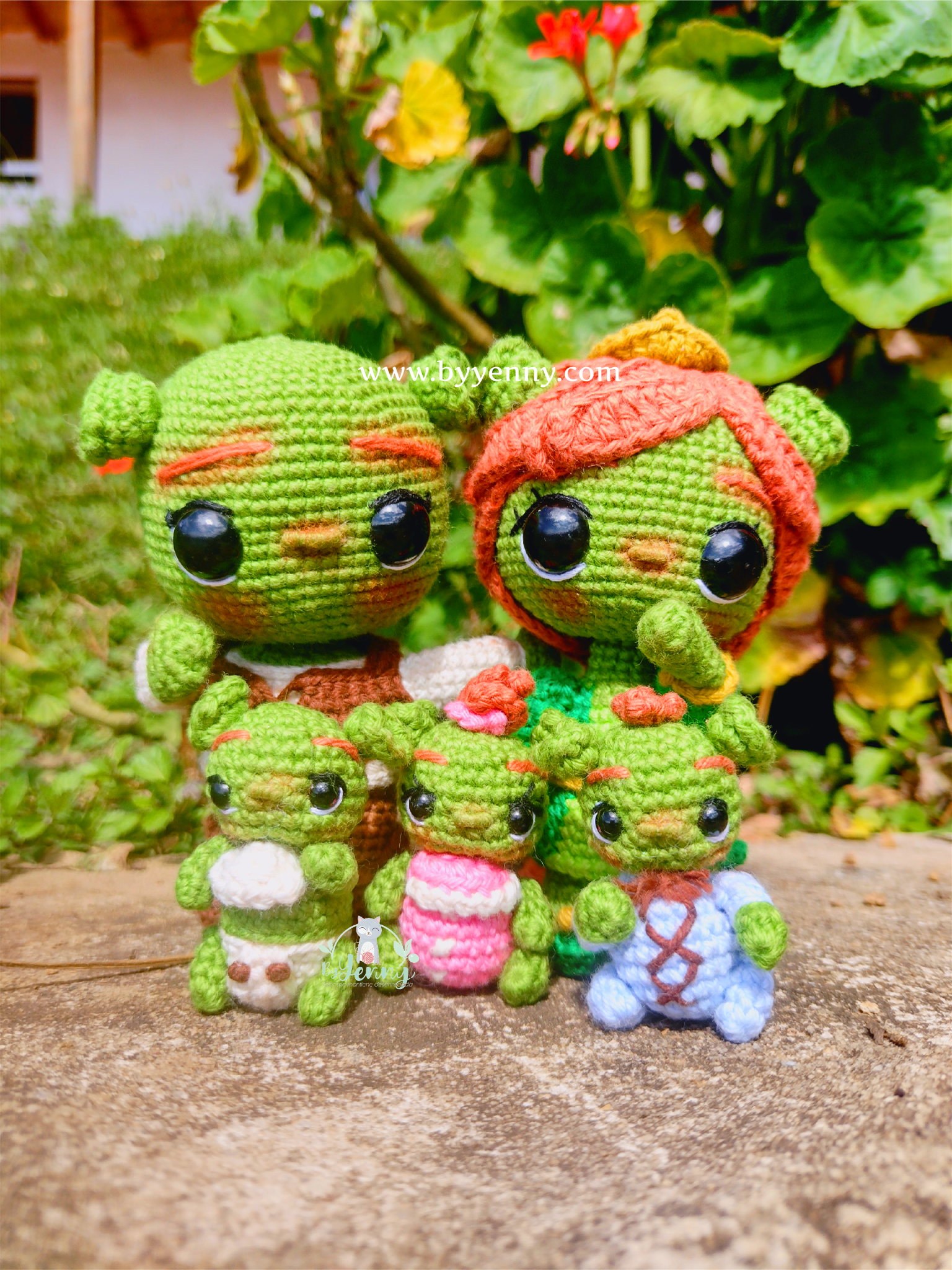 💚 Patrón completo para tejer a Fiona, Shrek y sus adorables trillizos (Farkle, Fergus y Felicia), incluye el biberón 🍼